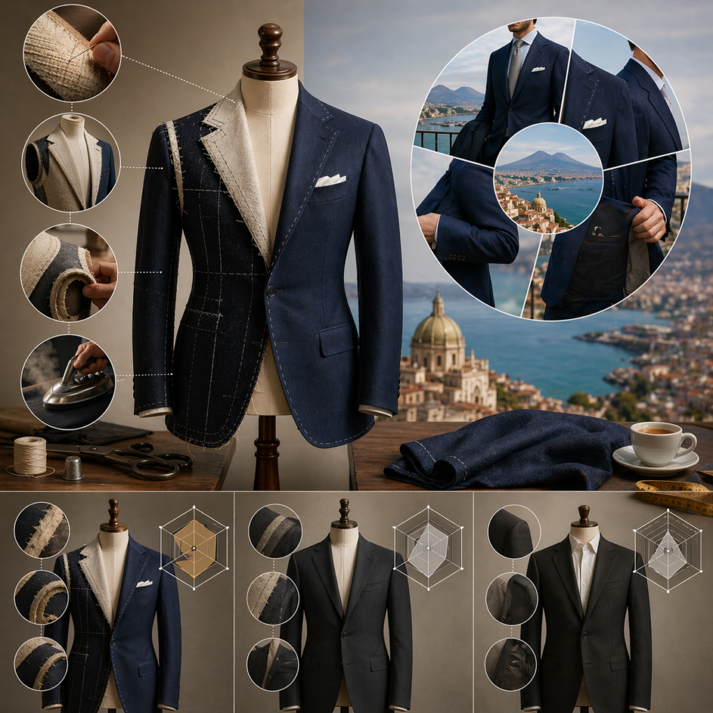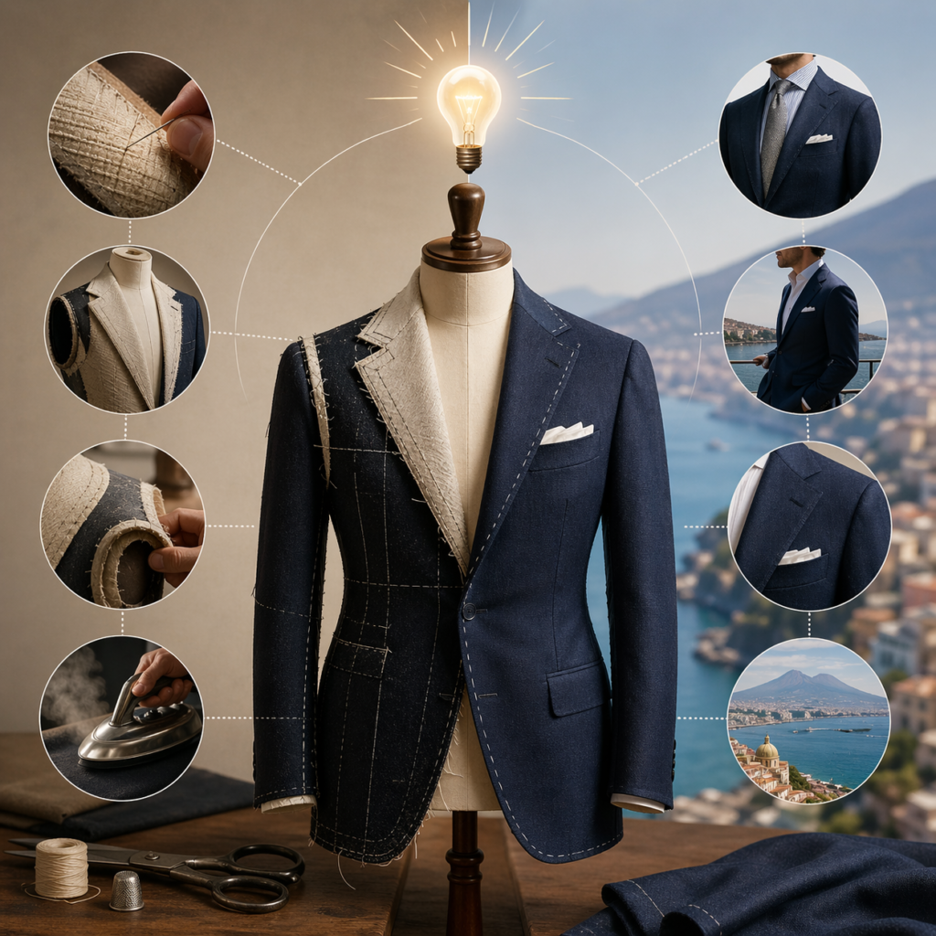この特別な着心地の正体こそが「ナポリ仕立て」です。しかし、その本質や他の仕立てとの違い、なぜここまでの着心地が生まれるのかという構造的な理由まで正確に理解している人は多くありません。