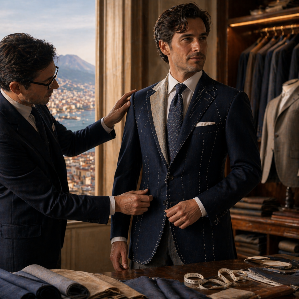 さらに、ナポリ仕立てはハンドメイド工程が多く、職人の手作業によって細部まで調整されます。