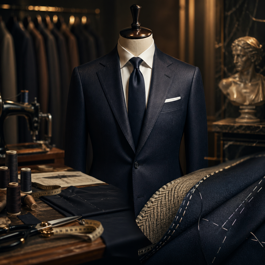 通常の既製スーツとは異なり、工業的な大量生産ではなく、熟練職人の手作業が多く含まれている点が大きな特徴です。