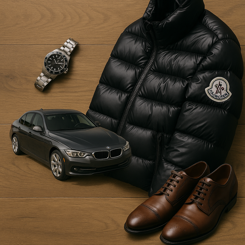 │ 高級車・時計・モンクレールの三点セット