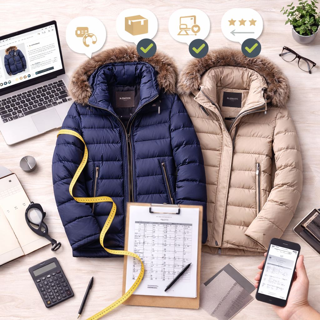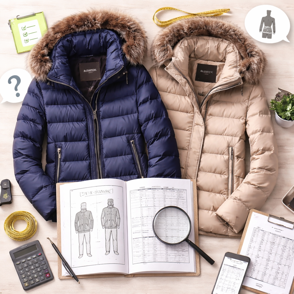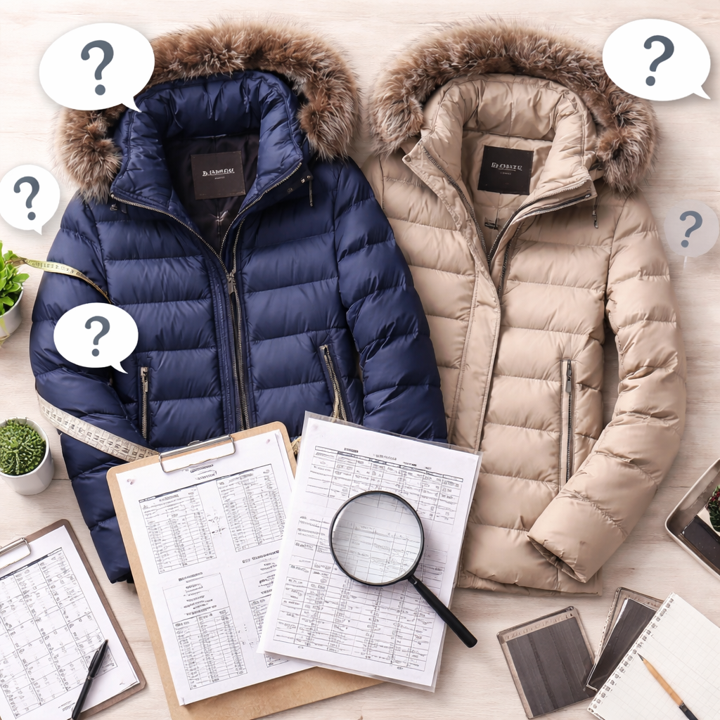 公式サイズチャートだけでは着用時のイメージが湧きにくい場合、現在所有しているアウターと数値を直接比較する方法が非常に有効です。