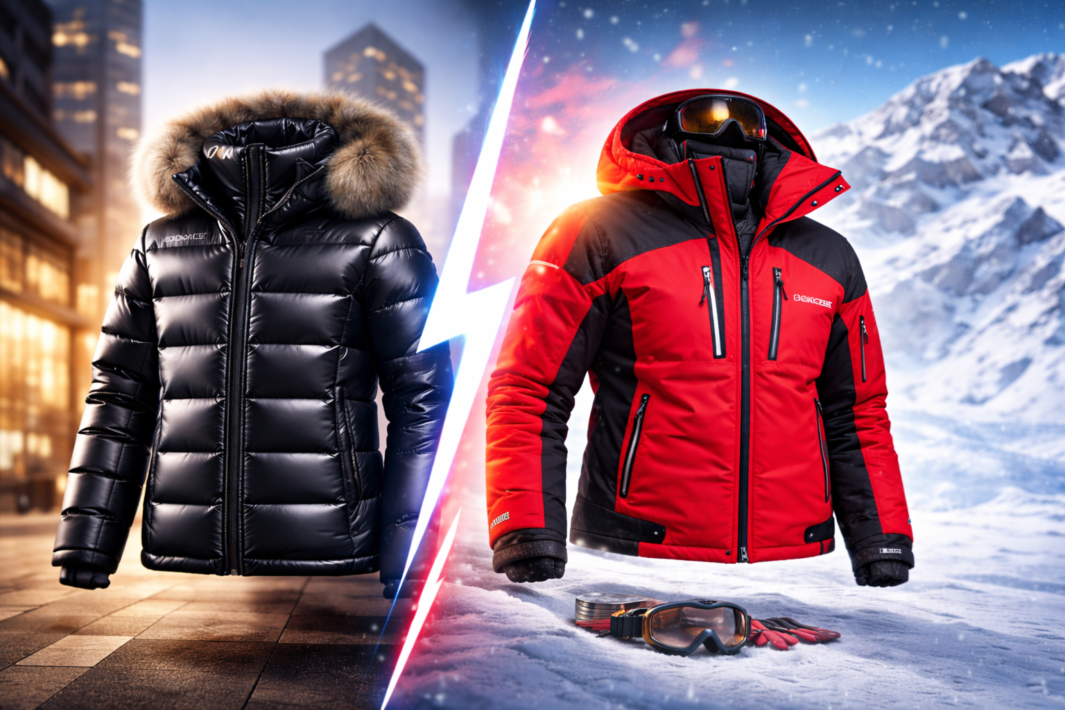 対してモンクレールは街中での使用を前提としたモデルが中心で、移動時の快適さや見た目の洗練さを重視した設計が特徴です。