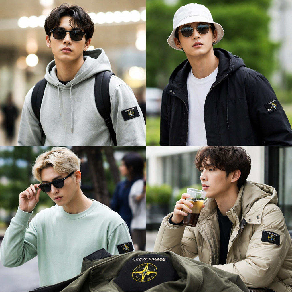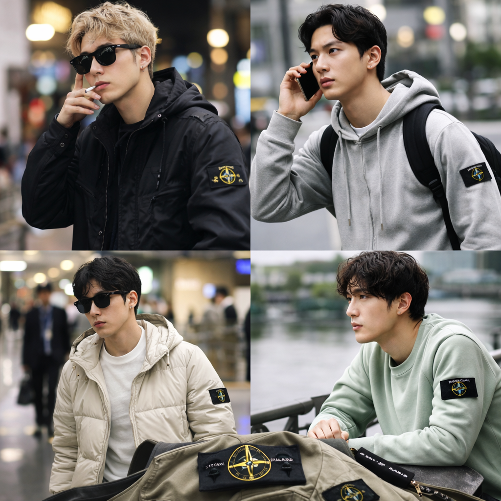 日本の俳優たちは、ストーンアイランドを主に私服や移動時のファッションとして取り入れる傾向があります。