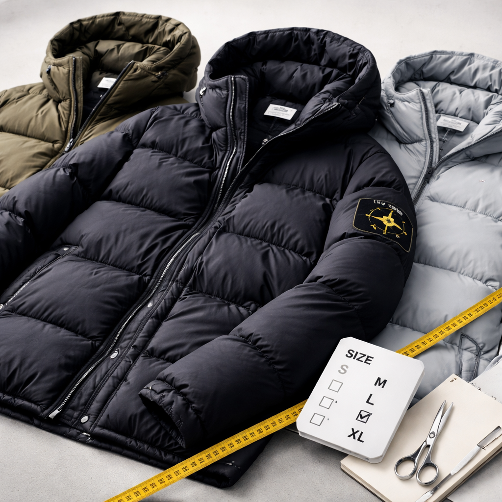 ストーンアイランドのダウンを選ぶ際は、まず公式サイズ表を確認することが重要です。