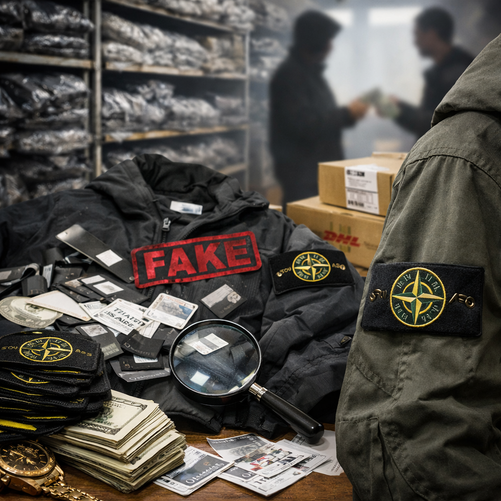 ストーンアイランドは高い機能性と独自のデザインで世界的に支持されている一方、偽物の流通が非常に多いブランドとしても知られています。